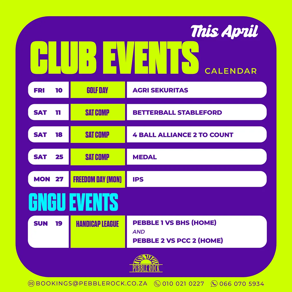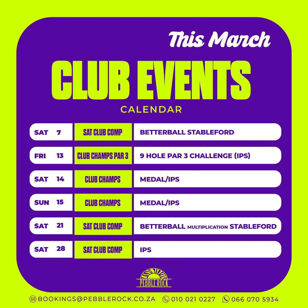 Pebble Rock Golf & Country Club hold ongoing competitions and host corporate and community golf days. Contact us to learn more.